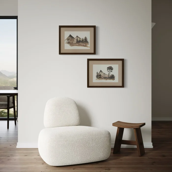 The Mountain series is digital printing on paper. It consists of passepartout, glass and frame. The patterns are drawn by Nakalend. A gallery wall can be created by combining it with other models of the same series or different frame models. 3mm thick glass is used in our frames. Since our bitter coffee frames, cream passepartouts, glass frames are specially produced for you on order, there is a production time of 5 to 10 working days. SIZE: 33X42 CM