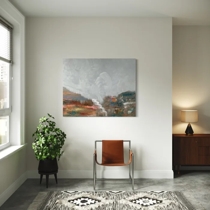 Acrylic work with mixed media texture on canvas is prepared by Nakalend. The table is unique, there is no continuation. It is sent without a frame.It is delivered to the cargo within 8 working days.Chassis thickness is 3 cm. It is suitable for horizontal use. Material: 100% cotton acrylic paint on canvas Product Dimensions:  80x100 cm