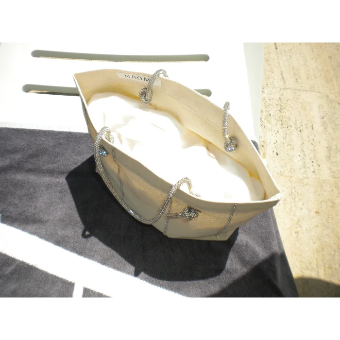 Its fabric is 320 gr thick canvas fabric.Dimensions: 35cm L x 8 cm W x 21 cm H.Handle length 13 cm.The crystal stones are pressed on the bag.