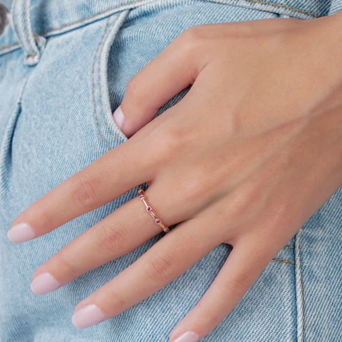 Ruby zircon stone is used.