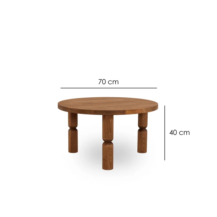 Width: 70 cm. Height: 40 cm. Depth: 70 cm. • 100% natural solid wood is used. UV resistant colorant and water based ultra matte varnish are used throughout the product. • Since it is produced from 100% natural wood, direct sunlight and water contact should be avoided so that it does not change shape over time depending on the humidity of the environment and the way of use. • The product is suitable for indoor use. • It is harmless to the environment and children's health. Since it is a natural tree and each one is unique, there may be different vein images and color differences from what is seen in the photo. • The stand is shipped disassembled. It is easily made ready for use. • It is domestic production with 100% domestic material.
