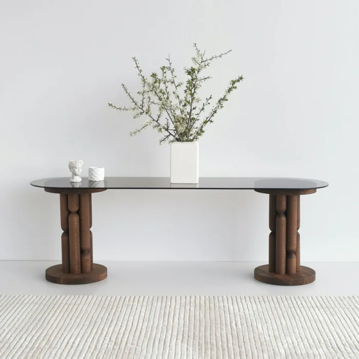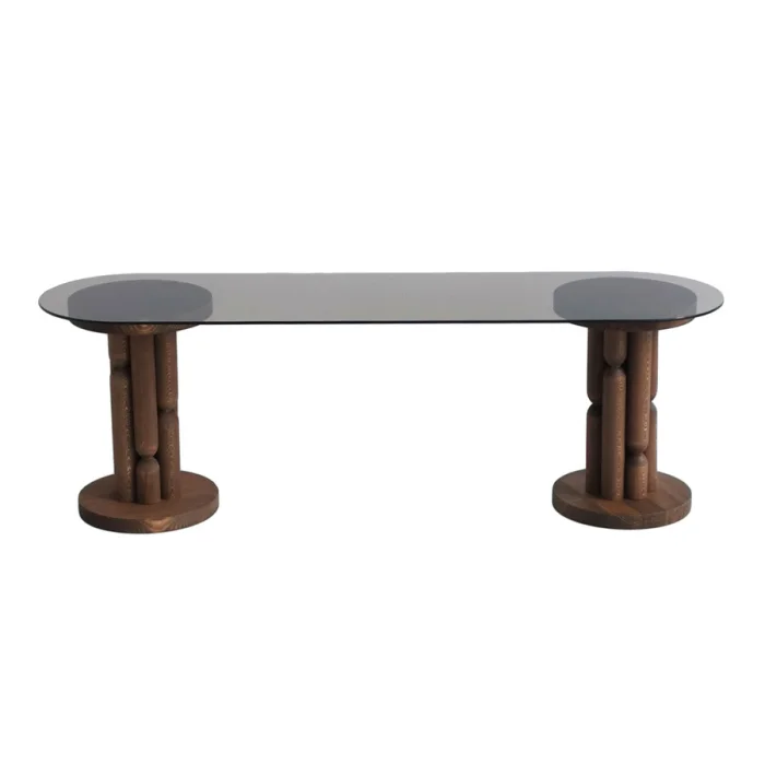 Bronze colored tempered glass is used. Tempered glass is more durable and safer than regular glass.