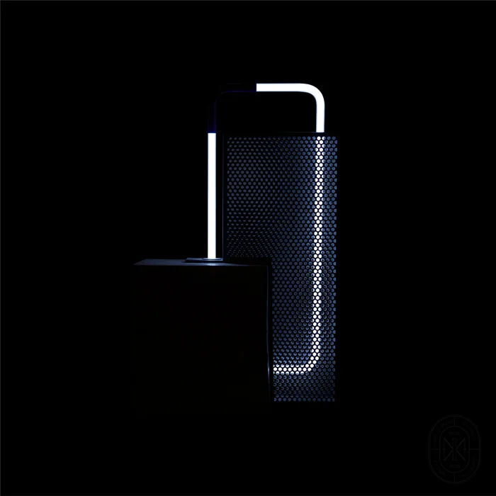 The Moiré Family creates a design language that redefines its position in our minds by using materials we are actually familiar with, the terrazzo blocks that form its body, plexi perforated surfaces that create a moiré effect, and glass tube neons that luminesce.