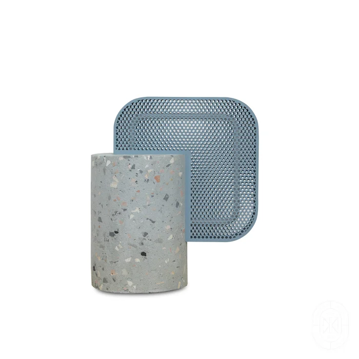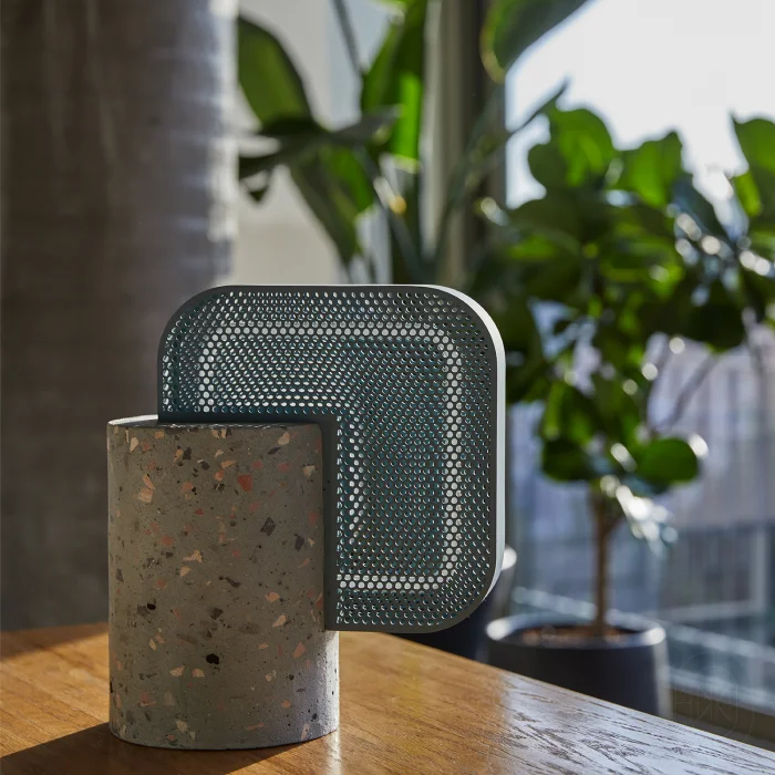 The Moiré Family creates a design language that redefines its position in our minds by using materials we are actually familiar with, the terrazzo blocks that form its body, plexi perforated surfaces that create a moiré effect, and glass tube neons that luminesce.