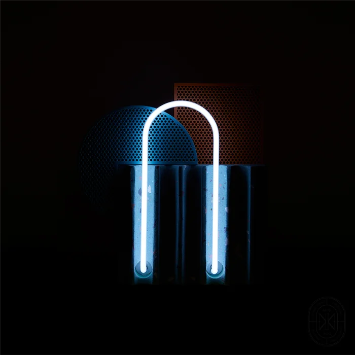 The Moiré Family creates a design language that redefines its position in our minds by using materials we are actually familiar with, the terrazzo blocks that form its body, plexi perforated surfaces that create a moiré effect, and glass tube neons that luminesce.