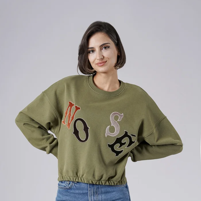 Cropped sweatshirt with a crew-neck and elastic waistband with No Sé embroidery detail on the front.
