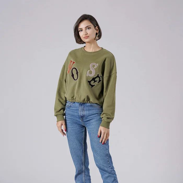 Cropped sweatshirt with a crew-neck and elastic waistband with No Sé embroidery detail on the front.