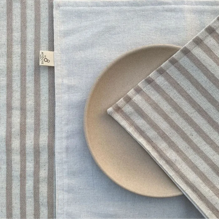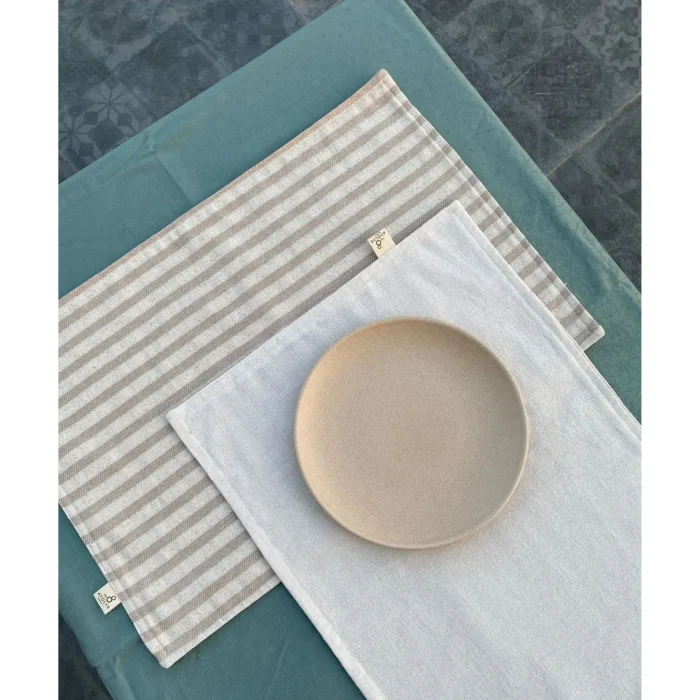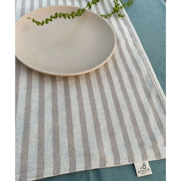 American services are made of buldan linen, patterned on one side and plain fabric on the other side in double layers. With its simple design and quality workmanship, you can add both a decorative and functional touch to your tables. Thanks to its double-layer structure, it is more durable and long-lasting. It contains 100% COTTON. It is sold in 2 pieces. Dimensions; 35x50 cm. The striped model is available in two color options, brown and gray.