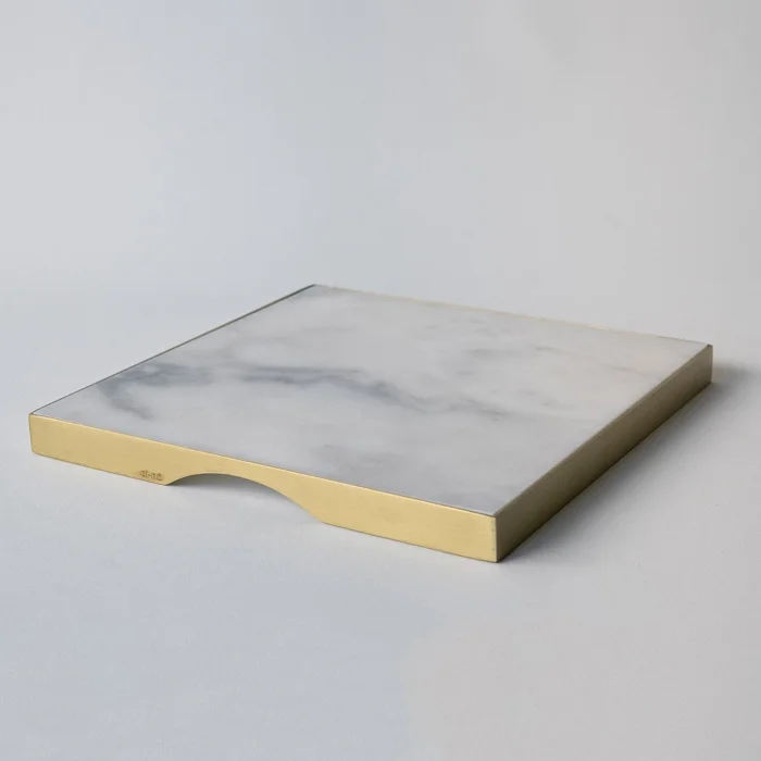 Frame: Solid BrassMaterial: White, Black, Calacatta viola, Green arebescato marble and travertine.Product Dimensions: Length: 30 cm Width:30 cm Height: 2.5 cm (approx)Weight:3100 g- Colour and pattern may vary for each object reflecting the raw/unique beauty of marble, making every item one of a kind.