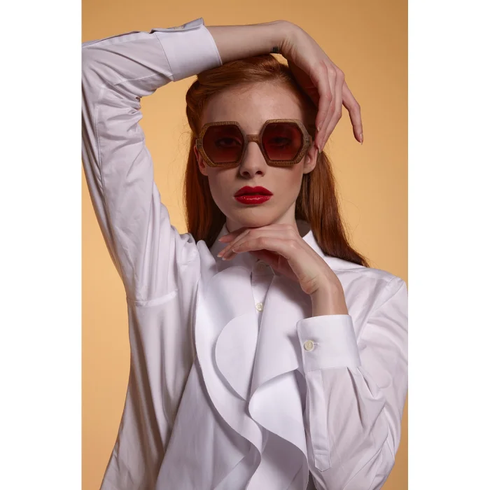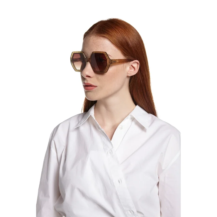 EMMA is a pre-assembled hexagonal sunglasses with a soft-touch frame and overlapping lenses. Gradient lenses are characterized by the fact that the dark color at the top of the lens changes to a lighter color towards the bottom of the lens. Sunglasses with gradient lenses are very convenient for driving, you can easily look at the dashboard from the lighter part, while the upper half of the lens protects you from glare! Okkia's stylish and affordable Italian sunglasses are extremely comfortable thanks to their light weight and soft-feeling frames. It is designed to easily adapt to any face, allowing you to wear it for long periods of time. Meets the relevant European standards for category 3 light filter lenses with UV 400 protection (8% - 18% transmittance).