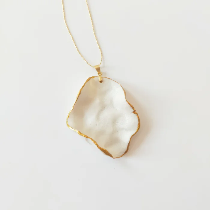 It is a handmade product. It is for visual reference purposes. There may be tonal differences. Produced from porcelain clay, fired at 1200°C Gold gilding over glaze decor paint applied Durable with its porcelain structure Steel chain is used, it does not tarnish