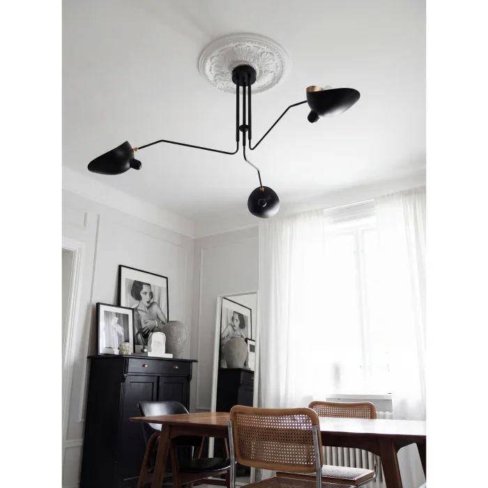 The Citrus 3-arm ceiling pendant is an eye-catching and iconic ceiling light. It is completely metal, the head and arms are oven painted, the movable head joints are satin brass plated. Diameter 75cm Total height is 45cm.