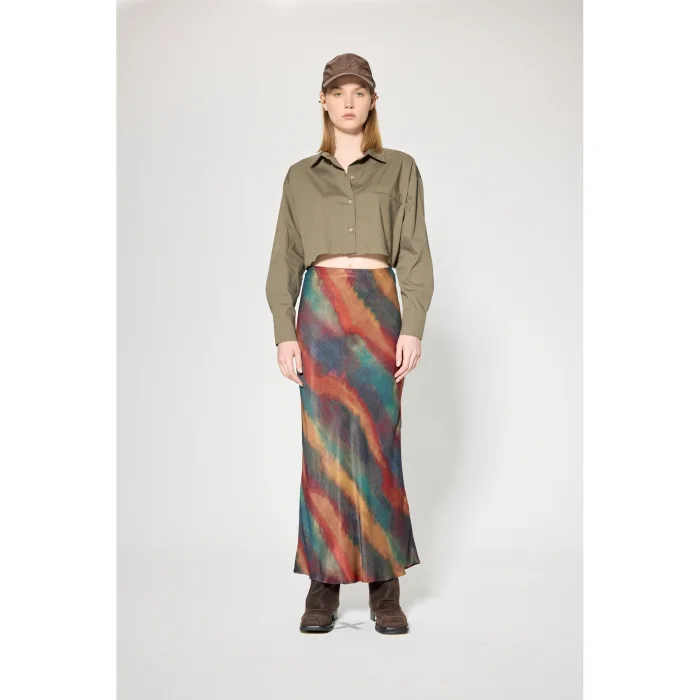 Fabric: 100% Cotton Volume: Relaxed form, front button, classic collar Length: Crop Detail: Hemhem and cuff edge left cut