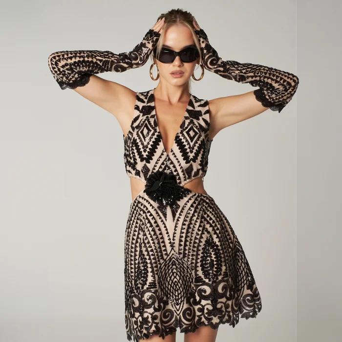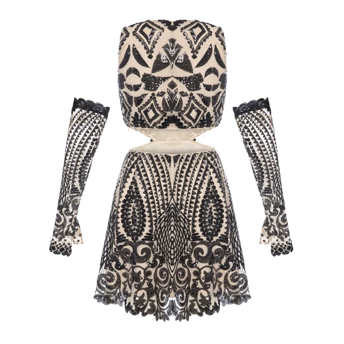 Product: Sequin Side Cut Out Mini Dress With Gloves Kendall