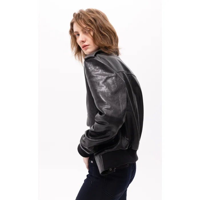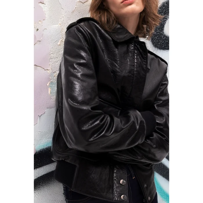 Indulge in luxury with the Aerope leather jacket. Crafted with the finest vegetable tanned leather, this premium product will elevate your style and provide unmatched durability. Featuring a sleek, closed-patented zipper, premium leather, and rib-knit sleeves and waistband, this jacket exudes elegance and sophistication.