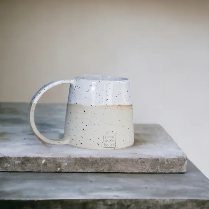Handmade Stoneware Ceramic Coffee Cup. The height is about 9 cm, the width of the mouth is about 6 cm. The specially designed coffee cup, hand-shaped with high-grade stoneware ceramic clay, provides comfort to use the handle. The product, which is half glazed inside and outside, is suitable for washing in the dishwasher. Due to the fact that stoneware is mud, it is heat resistant.