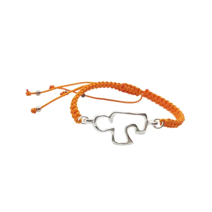 This design, in which the symbol puzzle piece cast in silver with the lost candle technique is paired with a colorful and adjustable knitted bracelet, comes with a story card.