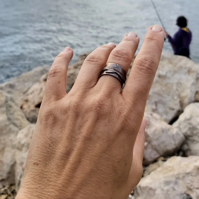 Thick bronz ring, oxidised, with an adjustable band.