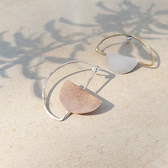Geometrical forms in different colors and shapes do make a couple of earrings.