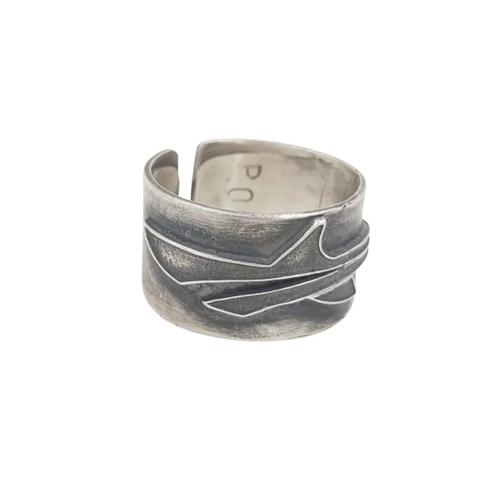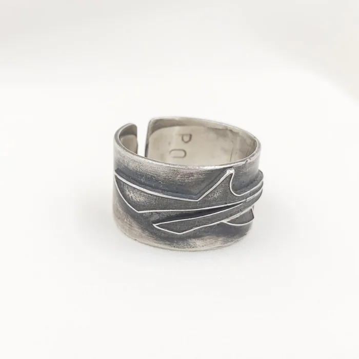 Adjustable thick ring arm. Oxidised sterling silver shark design for fingers 63-70(#23 to 30)