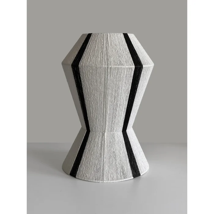 The 4mm iron structure is carefully covered with a unique paper thread that adds texture and dimension to the lamp.