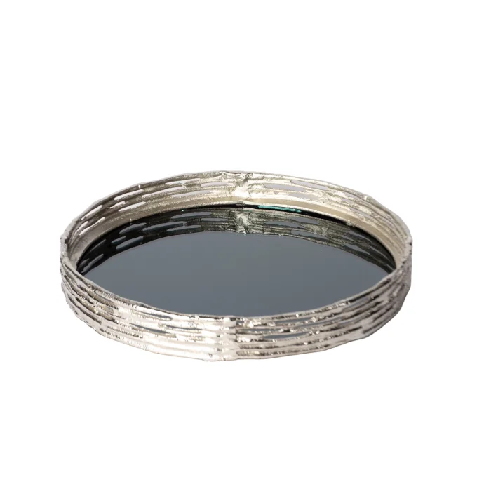 Decorative Mirrored Round Tray With Silver Casting Detail