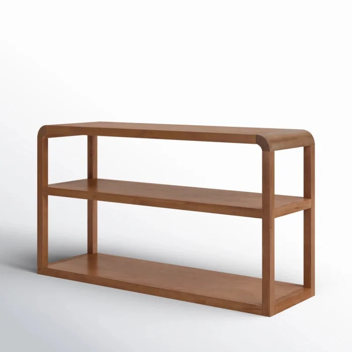 Mino Console is a timeless storage unit with open shelves that highlights the simple beauty of natural wood. Thanks to its rounded corner details and balanced proportions, it takes its place in the space without creating a hard block feeling.