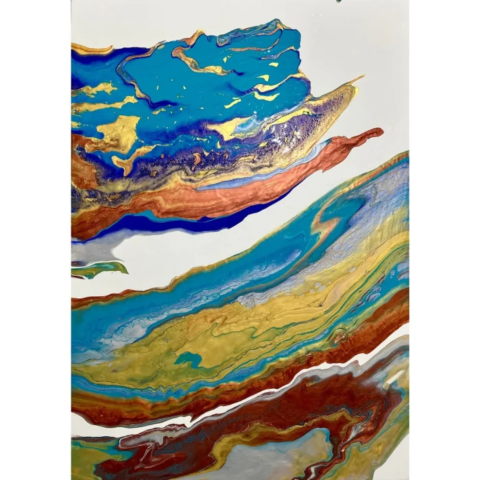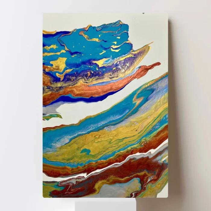 Acrylic pouring technique was applied on the canvas and glossy varnish was used for its surface.