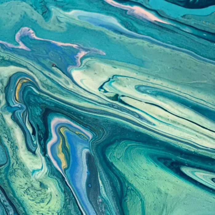 Acrylic pouring technique was applied on the canvas and glossy varnish was used for its surface.