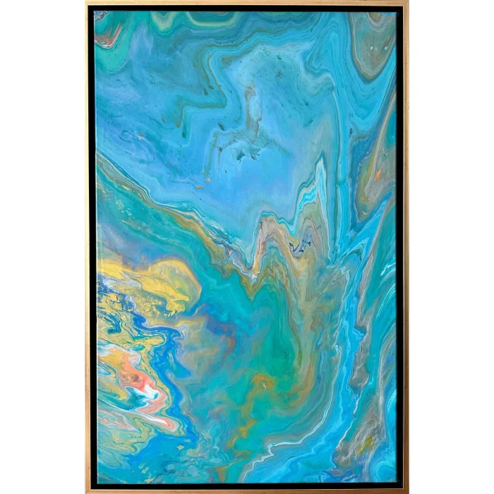 Acrylic pouring technique was applied on the canvas and glossy varnish was used for its surface.