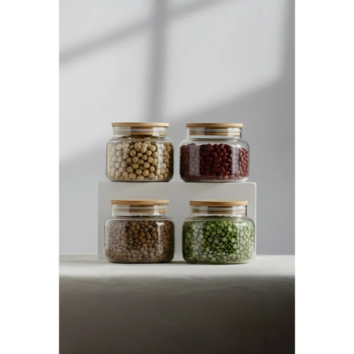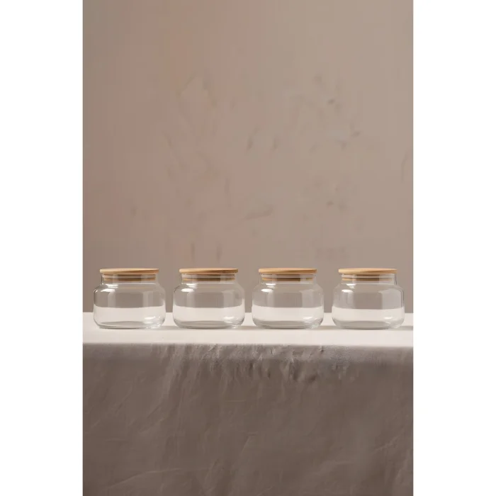 Product: Basic Bamboo Lid 4-piece Glass Jar Set 350 Cc