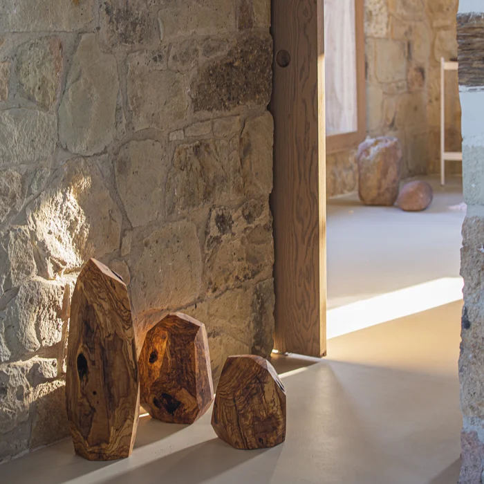 The products are not standard products. Since the solid products are shaped by the designer's own craftsmanship, each product has different surface shapes and may vary slightly in dimensions. Since its material is solid wood, color tones and veins may differ in each. Capillary cracks can be seen in solid wood over time.