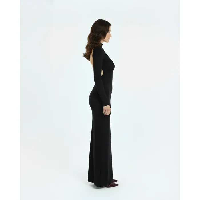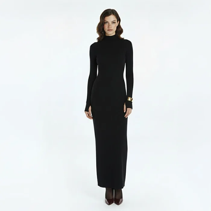 The Hesperia Dress offers a modern and balanced silhouette with its simple lines and soft knitwear texture. Its fluid structure naturally follows the body lines, creating a feminine yet effortless elegance.