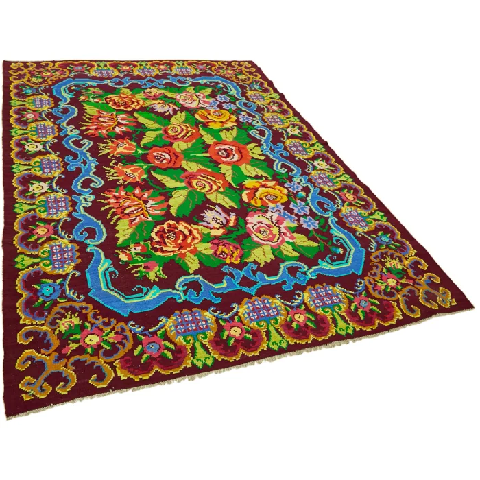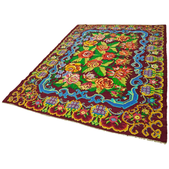 Moldovian Kilim Rug 204 cm width and 277 cm length and the pile height is 5mm, the approximate weight of the rug is 10 kg. It’s % 100 hand knotted wool and goat hair rug. It’s made from the natural dye.