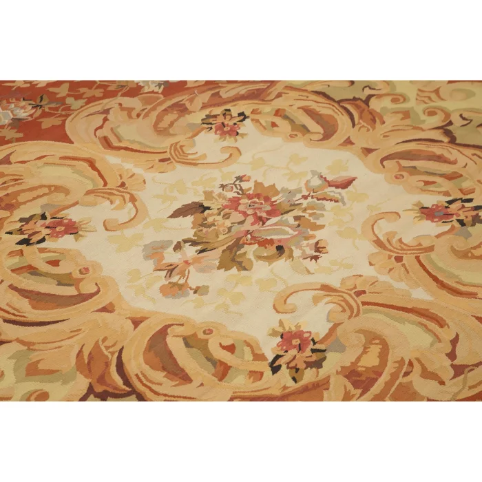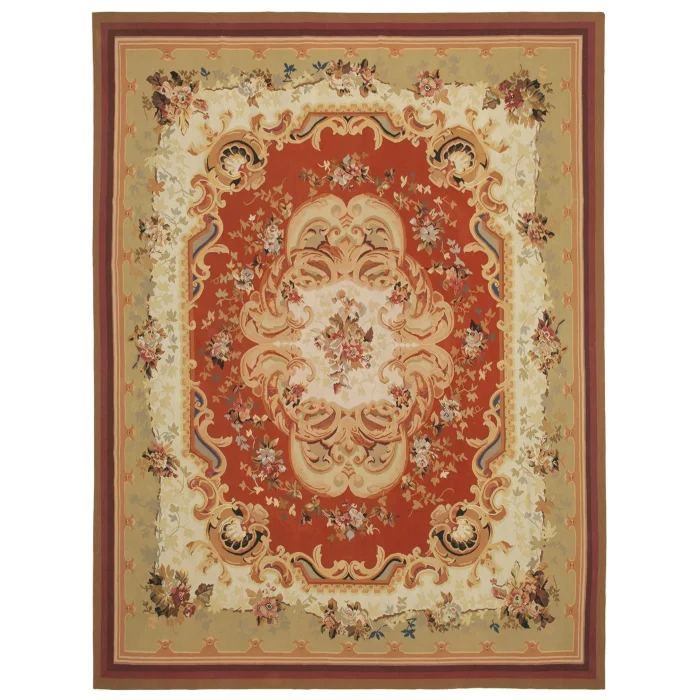 The Aubusson Rug is 321 cm wide by 426 cm long and about 5 mm thick. It weighs an average of 16 kg. It is made with hand-spun wool and cotton. It takes its colors from root dyes obtained naturally.