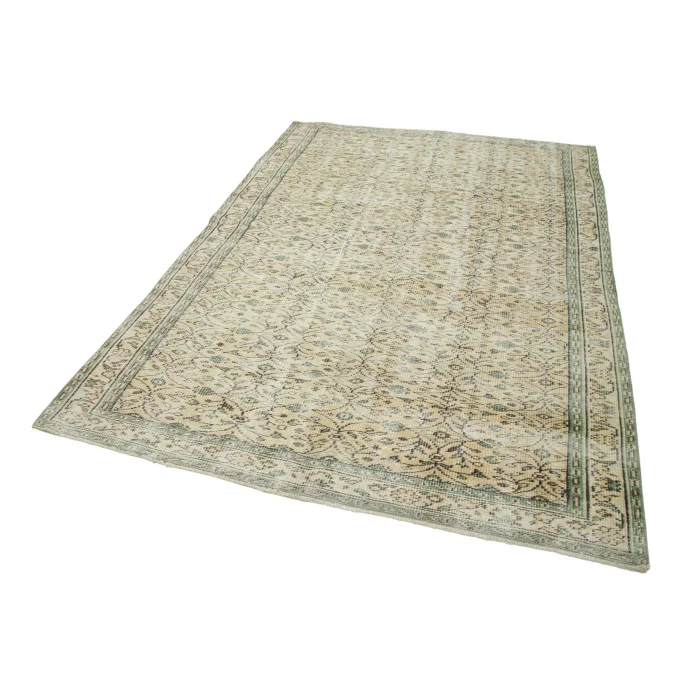Vintage Rug 177 cm width and 267 cm length and the pile height is 5mm, the approximate weight of the rug is 10 kg. It’s % 100 hand knotted wool and goat hair rug. It’s made from the natural dye.