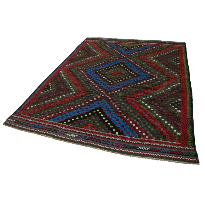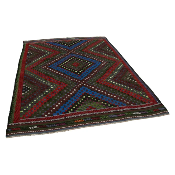 Vintage Cicim Rug is 203 cm wide, 263 cm long, 5 mm thick, and weighs an average of 11 kg. It is made of hand-spun 100% Organic Wool and Bristle. Root dye obtained naturally is used. / Vintage Cecim kilims are on 203 cm widht and 263 cm lenght and the pile height is 5mm, the approximate weight of the rug is 11 kg. It's 100% handknotted wool and goat hair rug. It's made from the natural dye.