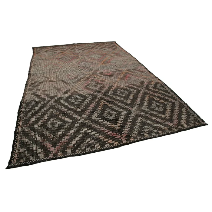 Vintage Cicim Rug is 230 cm wide, 365 cm long, 5 mm thick, and weighs an average of 17 kg. It is made of hand-spun 100% Organic Wool and Bristle. Root dye obtained naturally is used. / Vintage Cecim kilims are on 230 cm widht and 365 cm lenght and the pile height is 5mm, the approximate weight of the rug is 17 kg. It's 100% handknotted wool and goat hair rug. It's made from the natural dye.