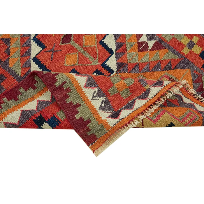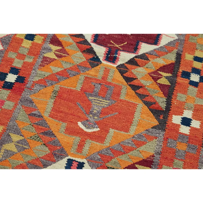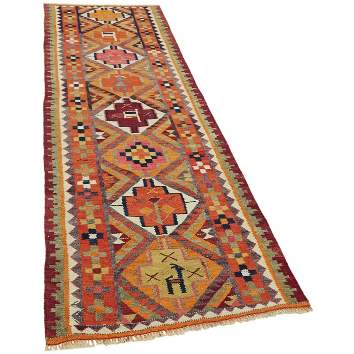 Herki Rug Runner is 90 cm wide, 290 cm long, 5 mm thick, and weighs an average of 7 kg. It is made of hand-spun 100% Organic Wool and Cotton. Root dye obtained naturally is used.