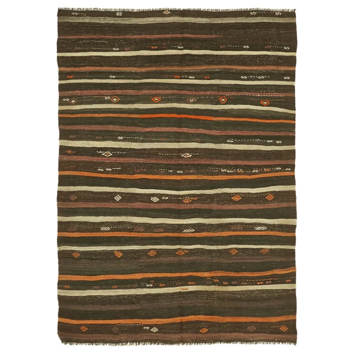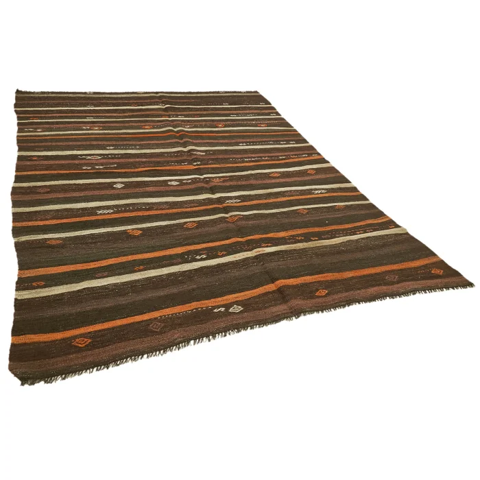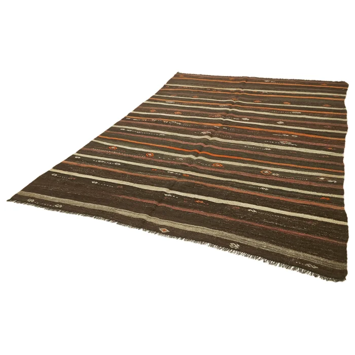 Anatolian Kilim Rug 215 cm width and 291 cm length and the pile height is 5mm, the approximate weight of the rug is 9 kg. It’s % 100 hand knotted wool and goat hair rug. It’s made from the natural dye.