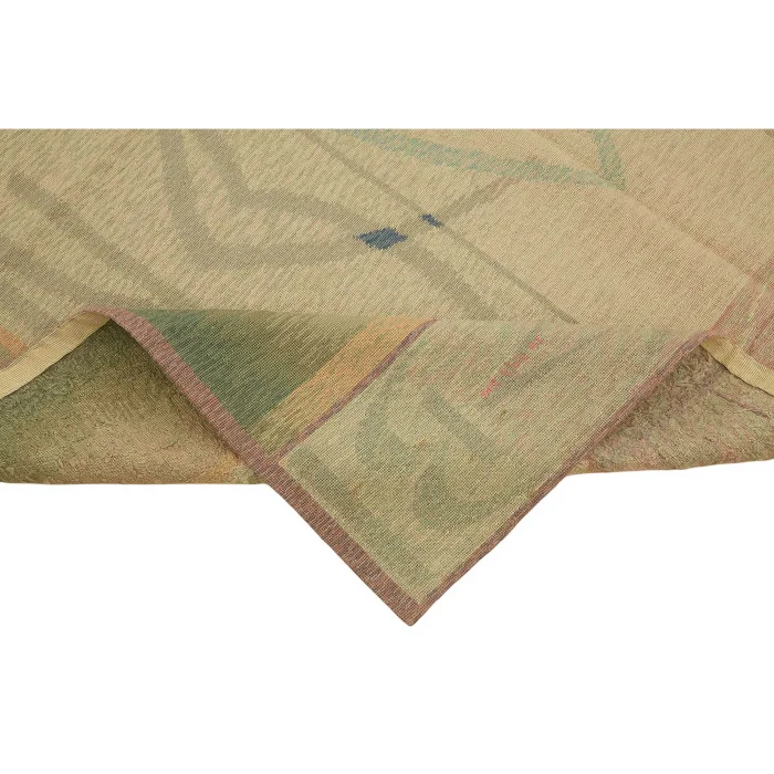 The Needlepoint Rug is 180 cm wide, 257 cm long and approximately 5 mm thick. It weighs an average of 5 kg. It is made with hand-spun wool and cotton. It takes its colors from root dyes obtained naturally.