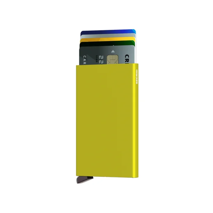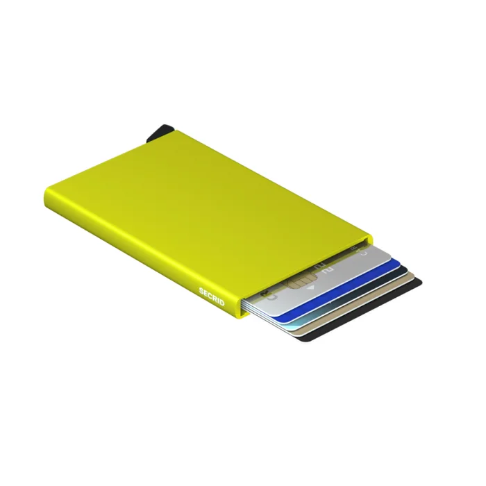 The Cardprotector is the heart of our collection and our most minimal wallet. The patented mechanism allows you to slide out your cards with one simple motion, ready for immediate use. The aluminium casing protects from bending, breaking and unwanted wireless communication.