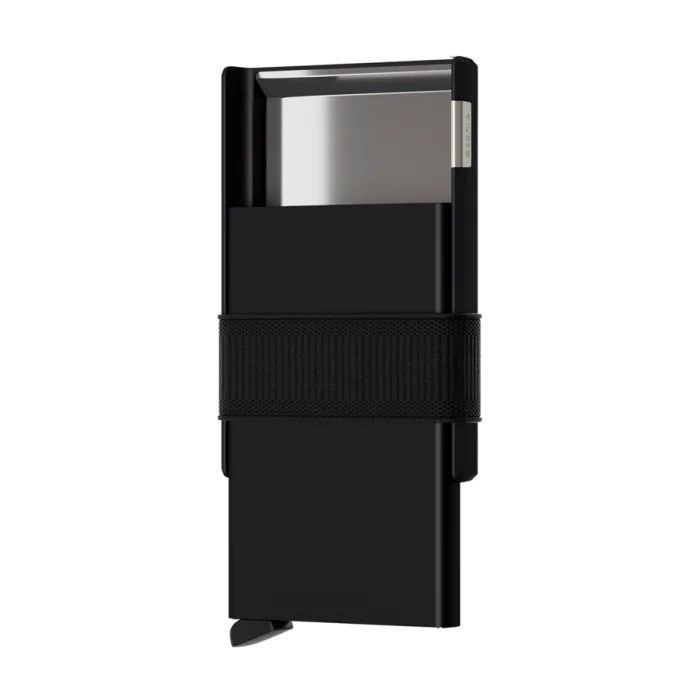 The Cardslide is a modular wallet consisting of a Cardprotector and a Slide, held together by a Moneyband. The extendable Slide provides extra space to carry business cards, banknotes, coins and small personal items.The patented mechanism allows you to slide out your cards with one simple motion, ready for immediate use. The aluminium Cardprotector and stainless steel Slide protect from bending, breaking and unwanted wireless communication.