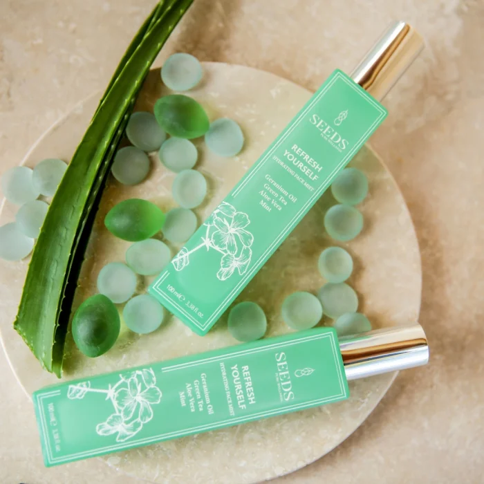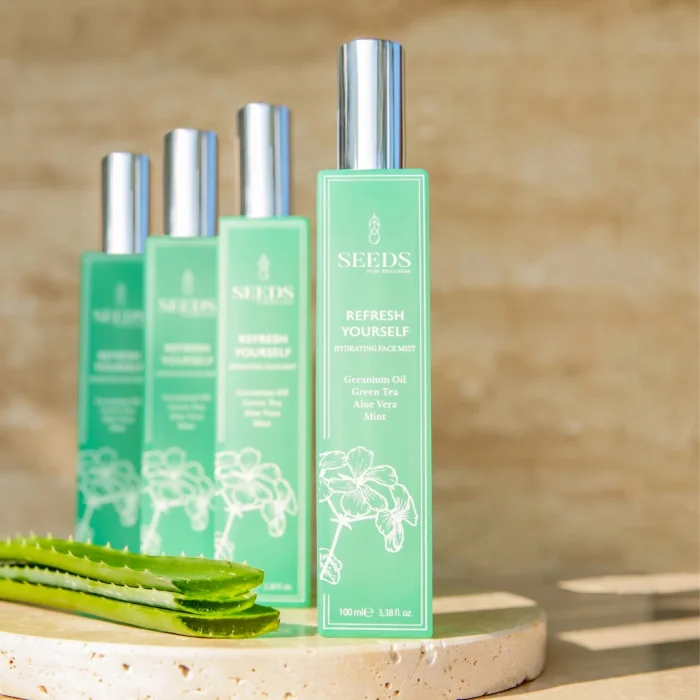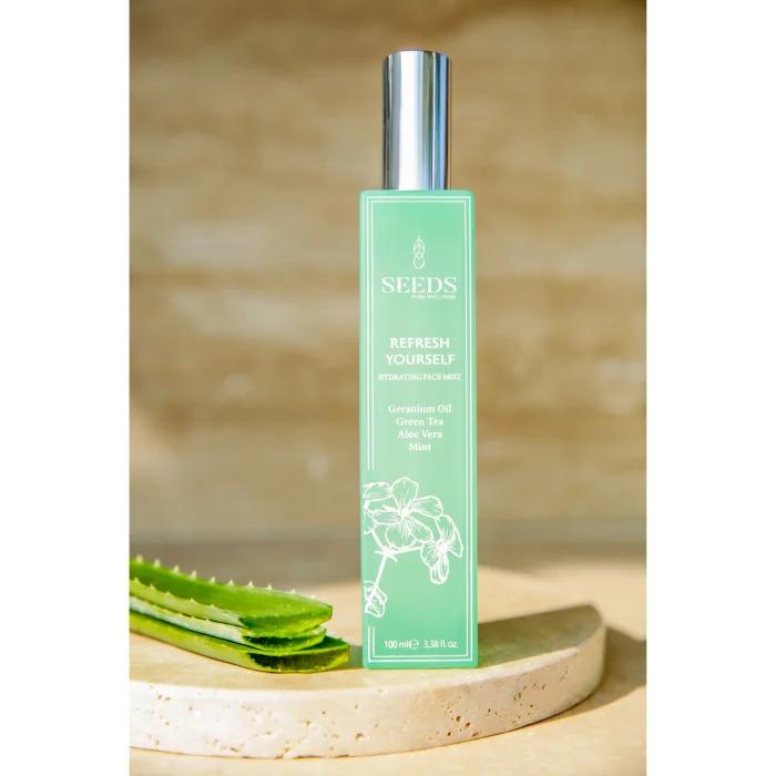 It is formulated to refresh and moisturize the skin at any time of the day with its natural components, geranium essential oil and mint extract. It has a moisturizing and refreshing formula with Panthenol and Pentavitin. Seeds Face Mist, which has antioxidant properties with Green Tea extract, also helps to soothe the skin with Centella Asiatica.