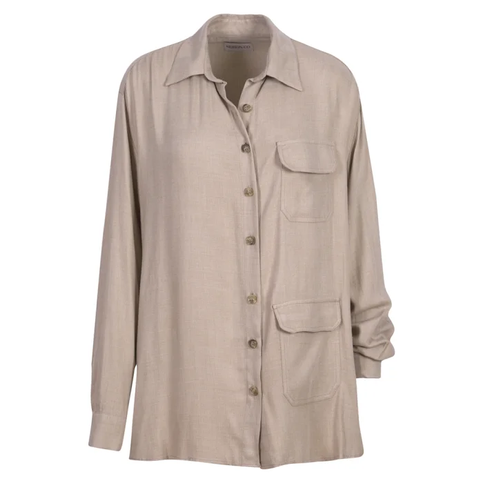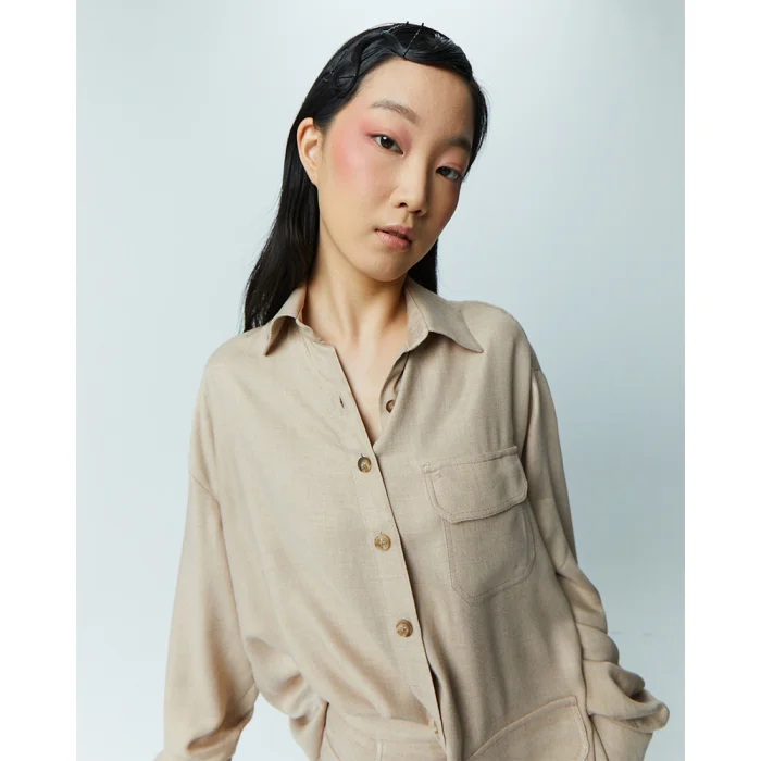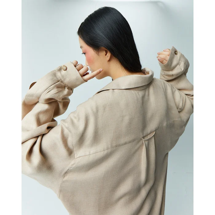 It has a sophisticated look with its soft fabric texture. 2 pockets and buttons are used in the product.