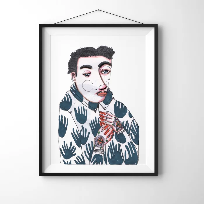 Drawings made with markers, dry and watercolors, then printed in giclée quality on 210g matte Hahnemühle enhanced paper. This technique; Art printing can capture 98% of the original colors, and these colors are preserved for about 200 years in a healthy way. *Will be sent by roll without frame. *Print size is 33x48. *Frame allowances are given extra. *Not measured.