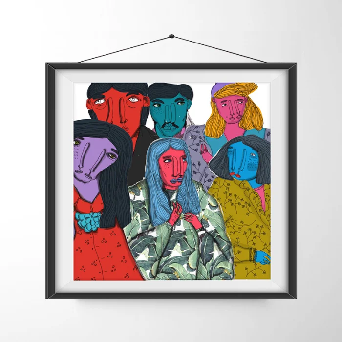 Drawings made with markers, dry and watercolors, then printed in giclée quality on 210g matte Hahnemühle enhanced paper. This technique; Art printing can capture 98% of the original colors, and these colors are preserved for about 200 years in a healthy way. *Will be sent by roll without frame. *Print size is 33x33. *Frame allowances are given extra. *Not dimensioned