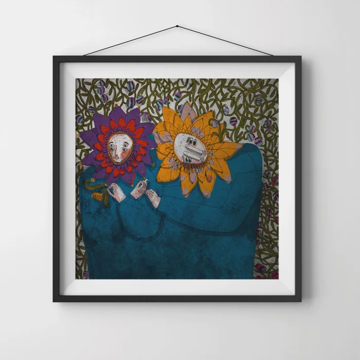 Drawings made with markers, dry and watercolors, then printed in giclée quality on 210g matte Hahnemühle enhanced paper. This technique; Art printing can capture 98% of the original colors, and these colors are preserved for about 200 years in a healthy way. *Will be sent by roll without frame. *Print size is 29x29. *Frame allowances are given extra. *Not dimensioned