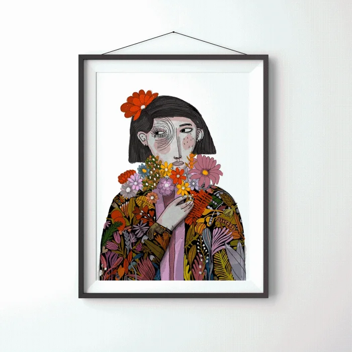 Drawings made with markers, dry and watercolors, then printed in giclée quality on 210g matte Hahnemühle enhanced paper. This technique; Art printing can capture 98% of the original colors, and these colors are preserved for about 200 years in a healthy way. *Will be sent by roll without frame. *Print size is 21x30. *Frame allowances are given extra. *Not measured.