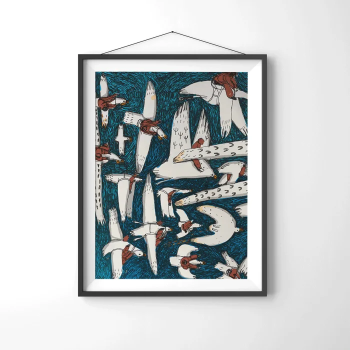 Drawings made with markers, dry and watercolors, then printed in giclée quality on 210g matte Hahnemühle enhanced paper. This technique; Art printing can capture 98% of the original colors, and these colors are preserved for about 200 years in a healthy way. *Will be sent by roll without frame. *Print size is 21x30. *Frame allowances are given extra. *Not measured.